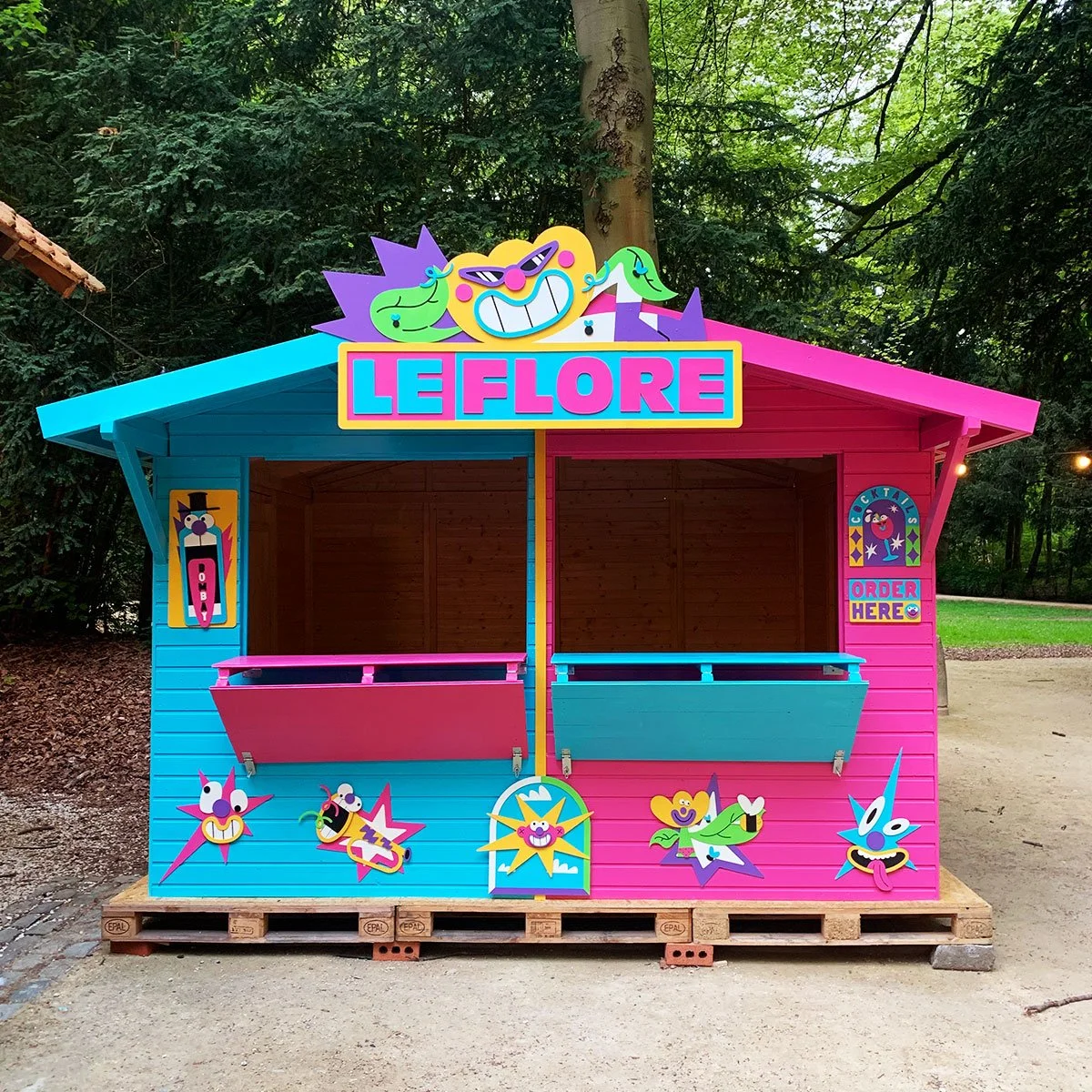 Chalet decoration for Le Flore in Brussels, commissioned by Bombay Sapphire for their #StirCreativity Program.