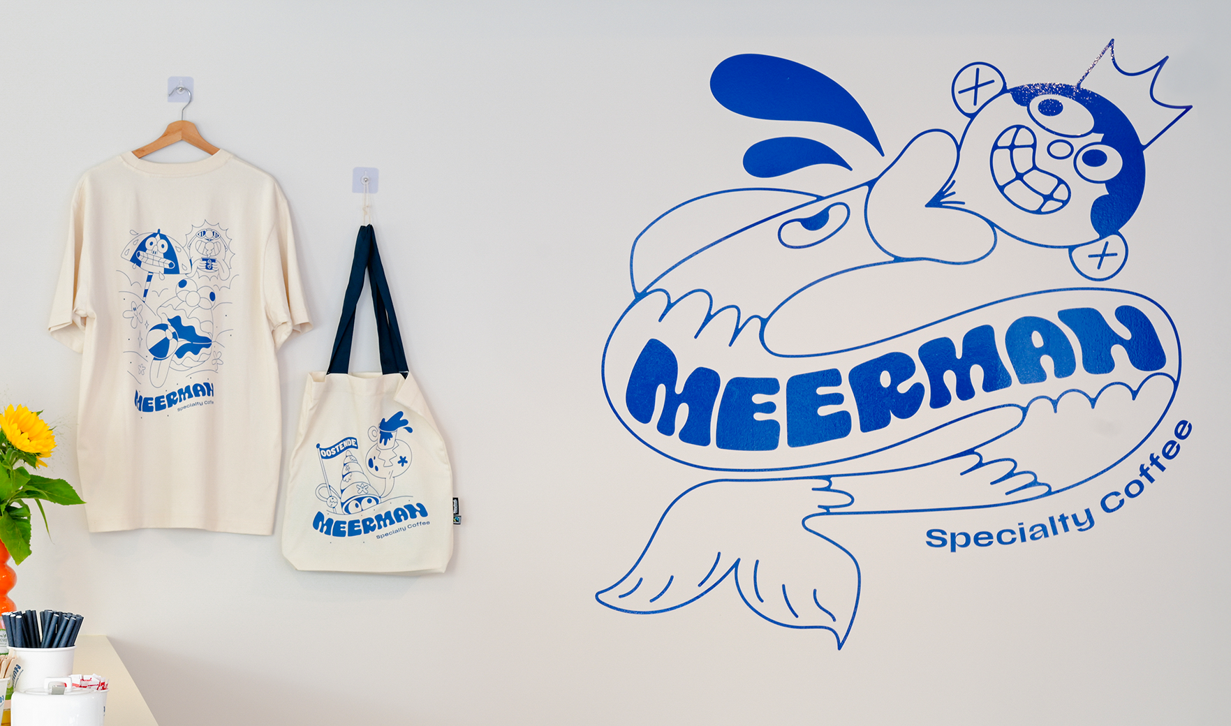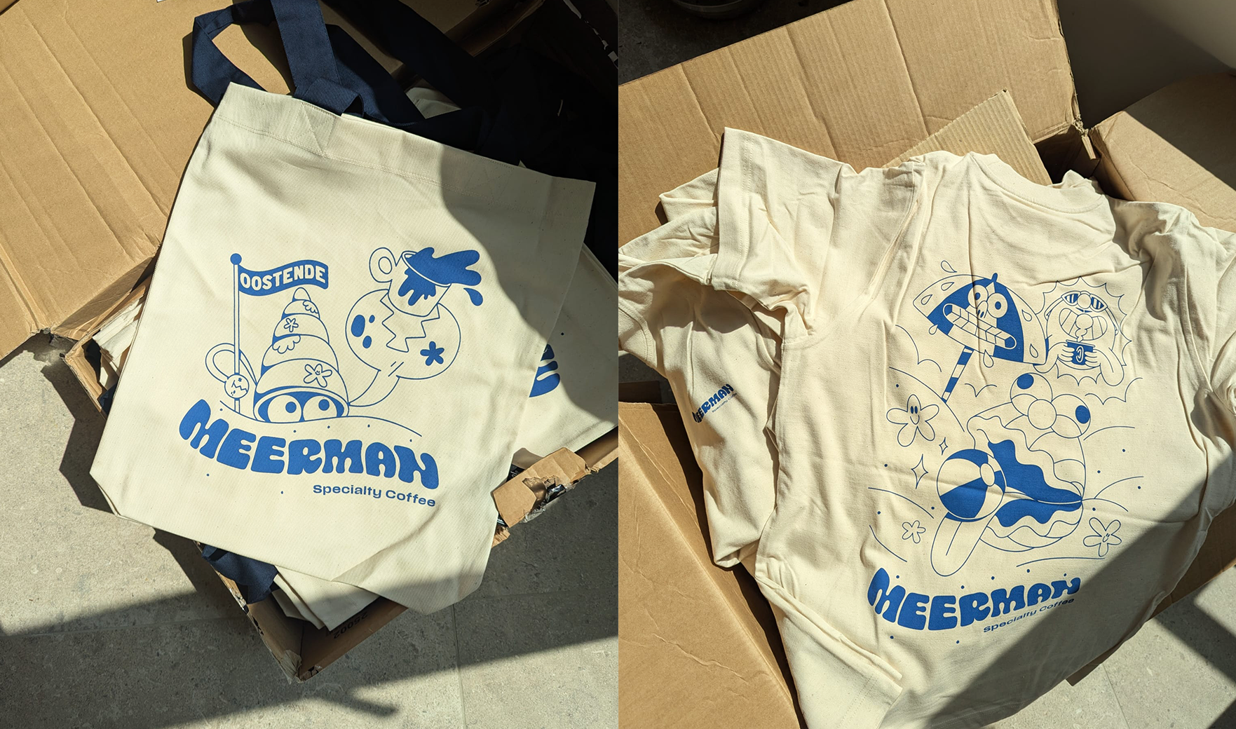 Illustration and branding from scratch for Meerman, an Ostend coffee bar specializing in specialty coffee.