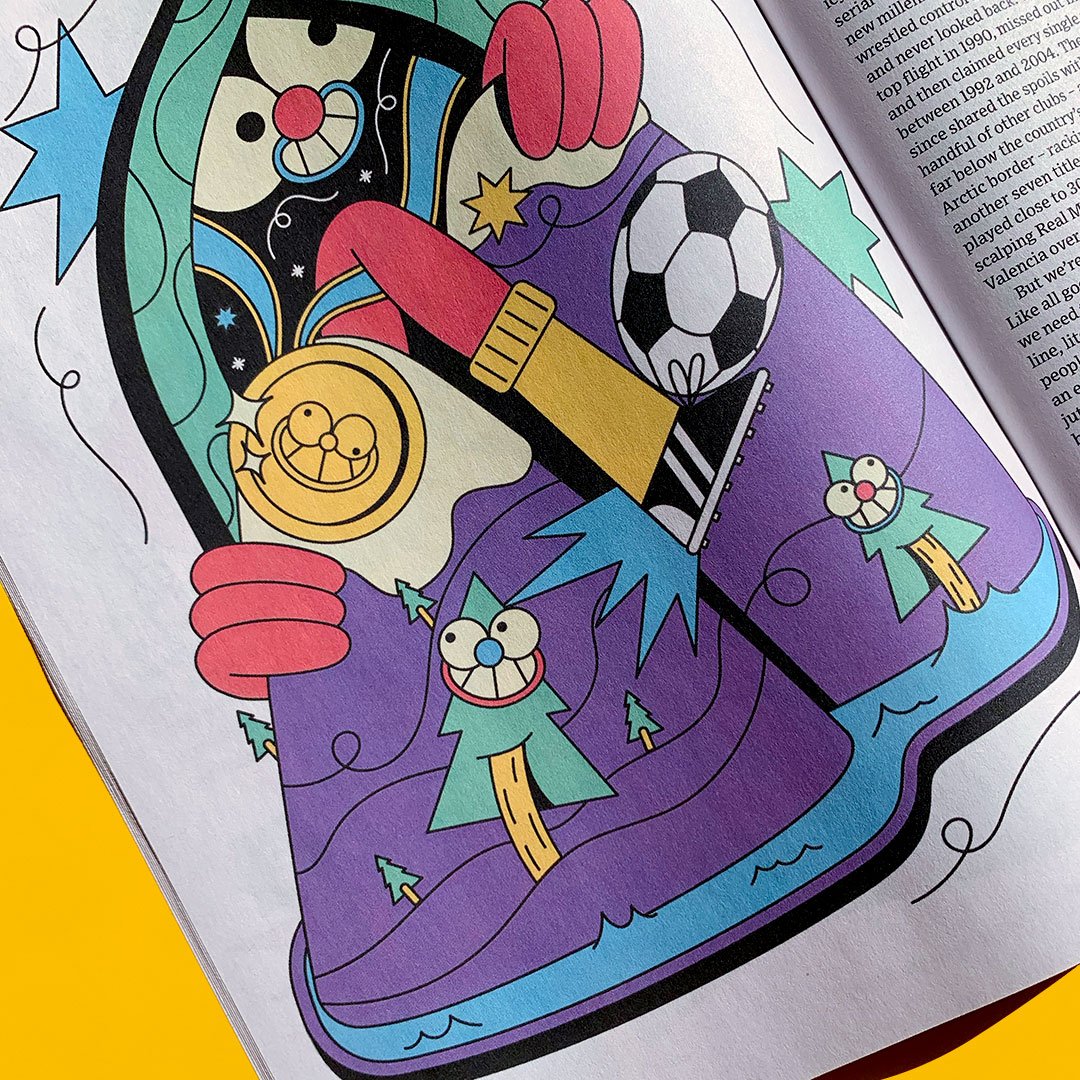 Editorial illustrations spotlighting FK Bodø/Glimt, the first team from the north of Norway to clinch the championship title.